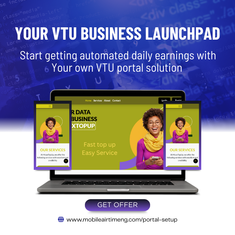 Do you want to earn while you sleep? Get your own VTU Business Portal where you resell to your own customers. Click here.